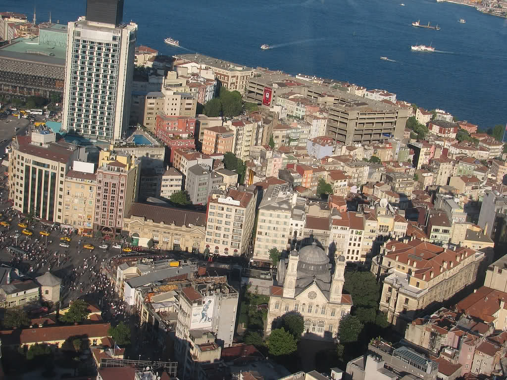 Anyway. Islamists in Turkey, light, dark and in-between, have long had a hard-on for the fact that the single most prominent and attractive building that looms over Taksim is the Greek church of the Hagia Triada with its cross-topped dome and bell-towers (see below). They keep vowing, over and again, to counter that with something, and surely, even if it’s not part of this Tarlabaşı Yenileniyor project, it’ll be some kind of Neo-Islamist, Emirates-type monster in the end, which gives us a lot to look forward to. The flower vendors will sure be gone. More to come.