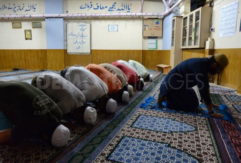 Umar Vakas from Pakistan, aged 23 has come to pray for Ramadan in the private underground place they have rented for gathering and speaking about their culture in Piraeus area.