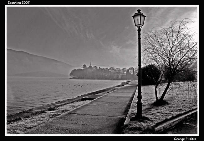 One of the most beautiful evocations of the melancholy — of the melancholy and stoic — ethos of Jiannena and Epiros generally is the this poem by Michales Ganas, Γυάλινα Γιάννινα, “Jiannena of Glass,” with a video put together by Vassilike Besiou. Her choice of musical accompaniment — the keening, rocking back-and-forth melody typical of the region (all Epirotiko music sometimes seems to have grown out of funeral dirges) and simple polyphony or second voice drone — is perfect for her purposes. Under the video are the verses of the poem itself, in English, Greek and in a probably amateurish Spanish translation I did for a friend of mine — a “this is where I’m from” gesture… ” on my part. The poem is odd both thematically and structurally in Greek even; excuse the clumsiness of the English translation as well.