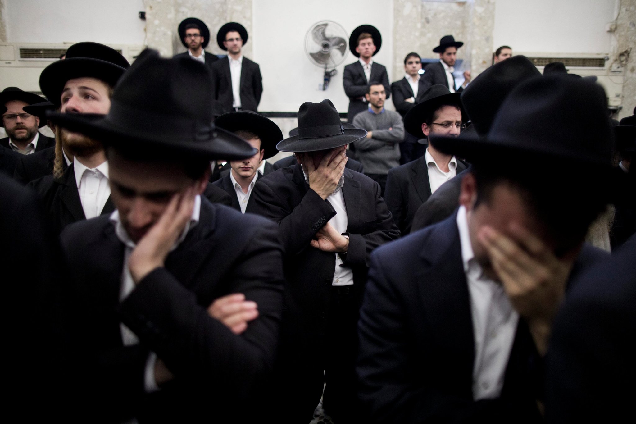 Orthodox Jews mourned during a eulogy ceremony before the funeral of the rabbi Moshe Twersky on Tuesday in Jerusalem. Abir Sultan/European Pressphoto Agency (click)