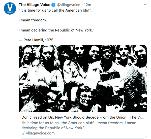 Readers may have noticed I’ve been missing New York desperately. But this 1975 article by Pete Hamil in the Voice that appeared on Twitter (definitely read in its entirety) really amped up my urban patriotism. At first I thought it was written tongue-in-cheek and ironically, but then it becomes obvious, in its detailled agenda, that Hamil was being totally sincere.