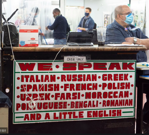 The RWOF claims that a society can’t function, can’t exist even, without one, unifying language. But every courtroom, bureaucratic office, emergency room and even a historic barber shop in New York has one of this kind of sign posted…and they all function more quickly and efficiently than any, say, in Athens.
