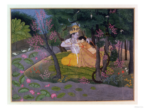In a previous post, April 10th “A Dancing Girl,” I wrote about the ubiquity of Krishna-Radha imagery in Indian culture, from the obvious traditionally religious contexts to Bollywood cinema. Sudhir Kakar, Indian psychologist and I guess all around cultural critic has a very interesting analysis of the Krishna archetype in Indian cinema. He contrasts him, the playful phallic teaser, with the Majnun archetype, the distraught, longing lover (“majnun” means crazed in Arabic, the same Semitic root as “meshugeh” in Yiddish), setting up an interesting Hindu-Muslim interplay between the two: