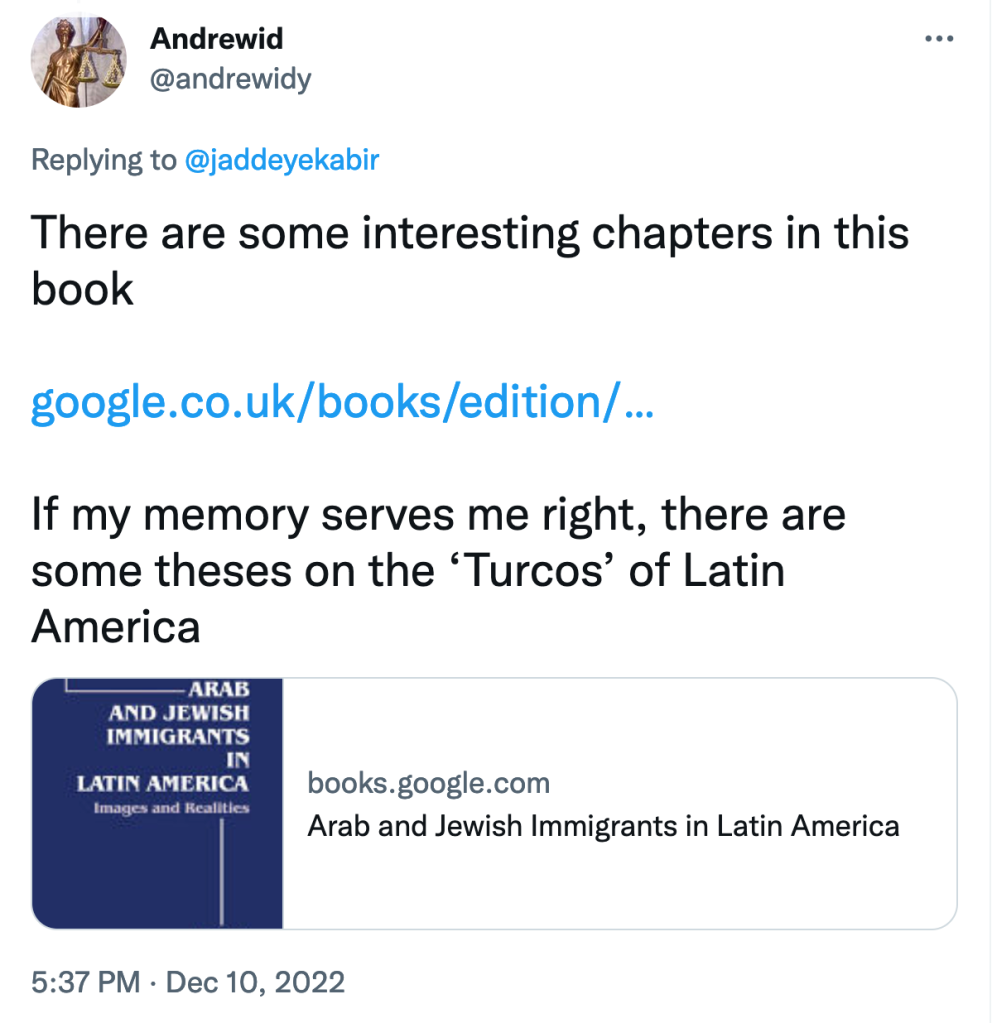 If my memory serves me right, there are some theses on the ‘Turcos’ of Latin America