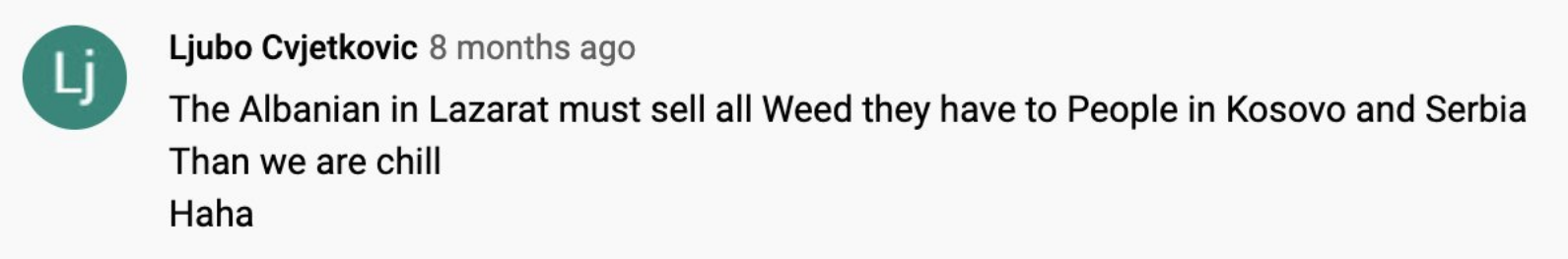 But soon, I think, the European Union got wind, no pun intended, of what most of the Balkans had already known for years and a huge police operation moved in, burst into every family’s compound and burned everything they had growing to ashes – “even their basil,” said one cousin of mine from Derviçani with glee. And her glee was made even greater because Lezarates’ humiliation was augmented by the fact that the police operation had entered the village through the upper mahalladhes of Derviçani (see map above), and — don’t quote me, what the fuck do I know — but I’m pretty sure with info from Derviçiotes who had been doing business – of some sort – with them for quite some time.