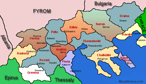 Finally, what both maps do make abundantly clear, and should be abundantly true to anyone with any kind of historical integrity, is that the majority ethnic group in what’s now Greek Macedonia were once Bulgaro-Macedonians. (I’ve been told to go fuck myself by numerous Greeks whenever I say this. And in those exact words. And in the middle of perfectly civil conversations. That’s the degree of infantile, paranoid anger Neo-Greeks feel about the issue. And it’s totally obvious that that comes from semi-consciously knowing that Macedonia’s Greekness is problematic and much more historically complicated and heterogeneous than they would like it to be.) Obviously that’s not the case today, due to their expulsion throughout the decade of the 1910s and the Balkan and Second World Wars, a population exchange with post-war Bulgaria, the massive influx of Greeks from Turkey in the ’20s, and that the fact that those Macedonian-speakers who remained and still form a most cohesive ethnic block in the northwest corner provinces of Kostur and Lerin, (see map below) are still too terrorized to speak their identity out loud, or, even more tragically, have been so brainwashed that if you even suggest that they speak some form of Bulgaro-Macedonian, they become enraged. More Royalist than the King. More on Macedonia in future posts. But let’s just say that the one thing the maps show definitively is that, of all the countries to come out of the collapse of Ottoman power in the Balkans — and given the real demographics on the ground — it’s safe to say that Bulgaria came out the most short-changed and screwed.