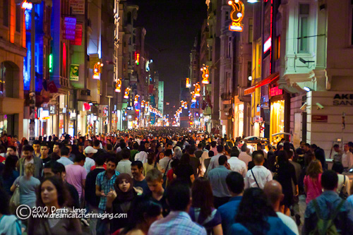 Istanbul has twice septupled in size since the middle of the last century and Greek life there has faded away into nothing: the City has turned into a gigantic, intractable monstropolis like so many others. Almost no one in Istanbul is from Istanbul anymore. Yet this relatively small stretch of one small street still attracts massive daily and nightly crowds. After a couple of depressed decades caused by the minority exodus, some criminally abusive urban planning projects and the criminal neglect of its architectural heritage, the street and the whole neighborhood have come back into their own again, and then some, in a way that frankly makes me so giddily proud and happy whenever I’m in C-town that any of the past’s bitterness just vanishes — it’s ok it’s not “ours” anymore; it’s still mine. It’s perhaps the most instant snapshot one can get of Turkey’s current cultural dynamism, sophistication, prosperity, and growing freedom – in however tricky a state that freedom still may be. Despite the clubs and malls of the northern or Asian suburbs, and despite the even more endless suburbs beyond them, inhabited by Anatolian migrants who may have never even seen it, the Jadde still gives the impression of being the default destination of any Istanbullu who’s meeting friends, looking to consume an urban pleasure of some kind, or just has nowhere else to go or anything else to do. It’s a delicious, overwhelming mix of commercial crassness, elegance, sexiness, good music, cool bookstores, garbage and great food: an Eastern flaneur’s paradise. In fact, aside from the Nevsky in Petersburg, I can think of no one street in which one can read so much of a great metropolis’ experience of modern urbanity as the Jadde. It’s one of my favorite places on earth.