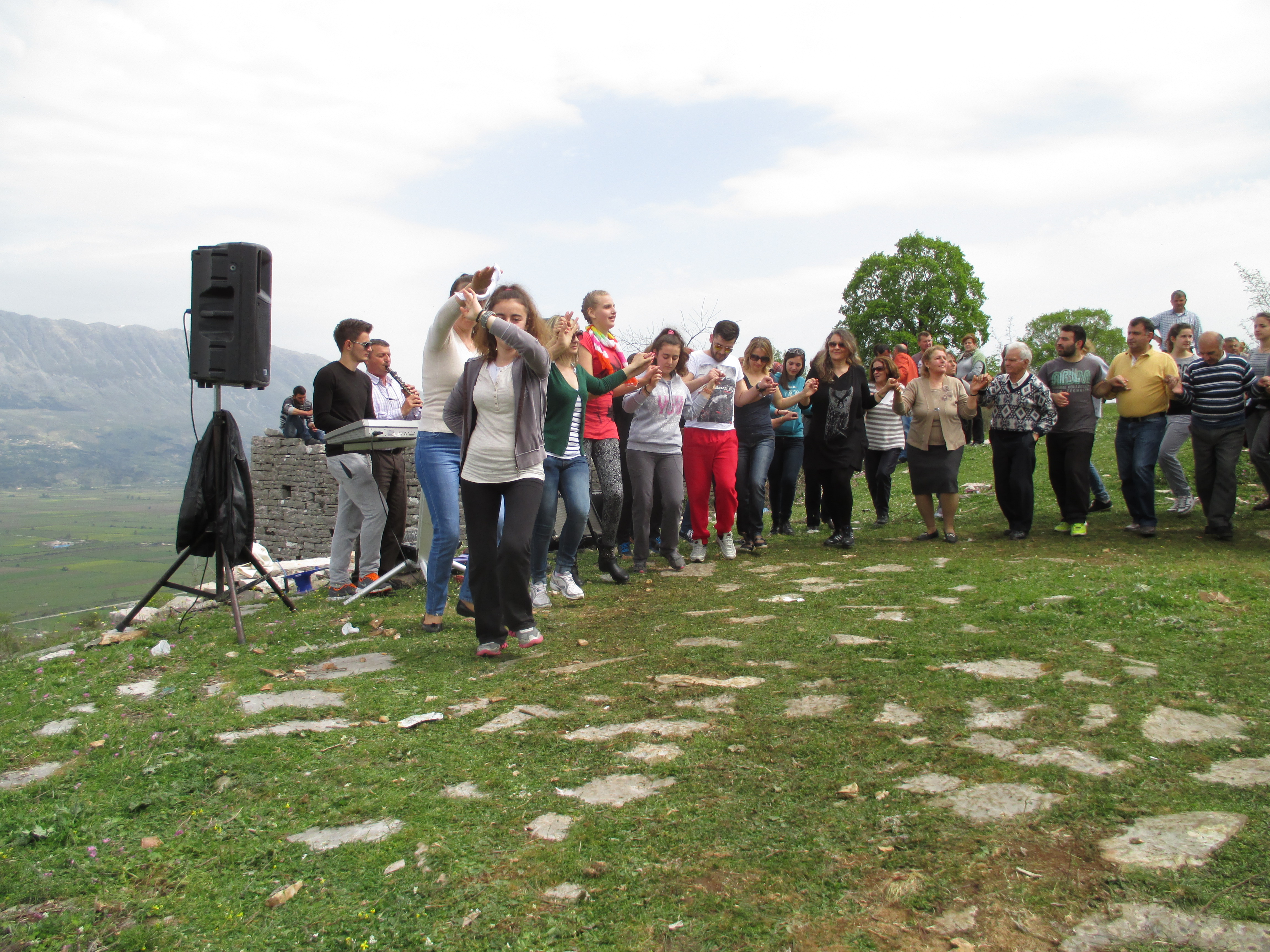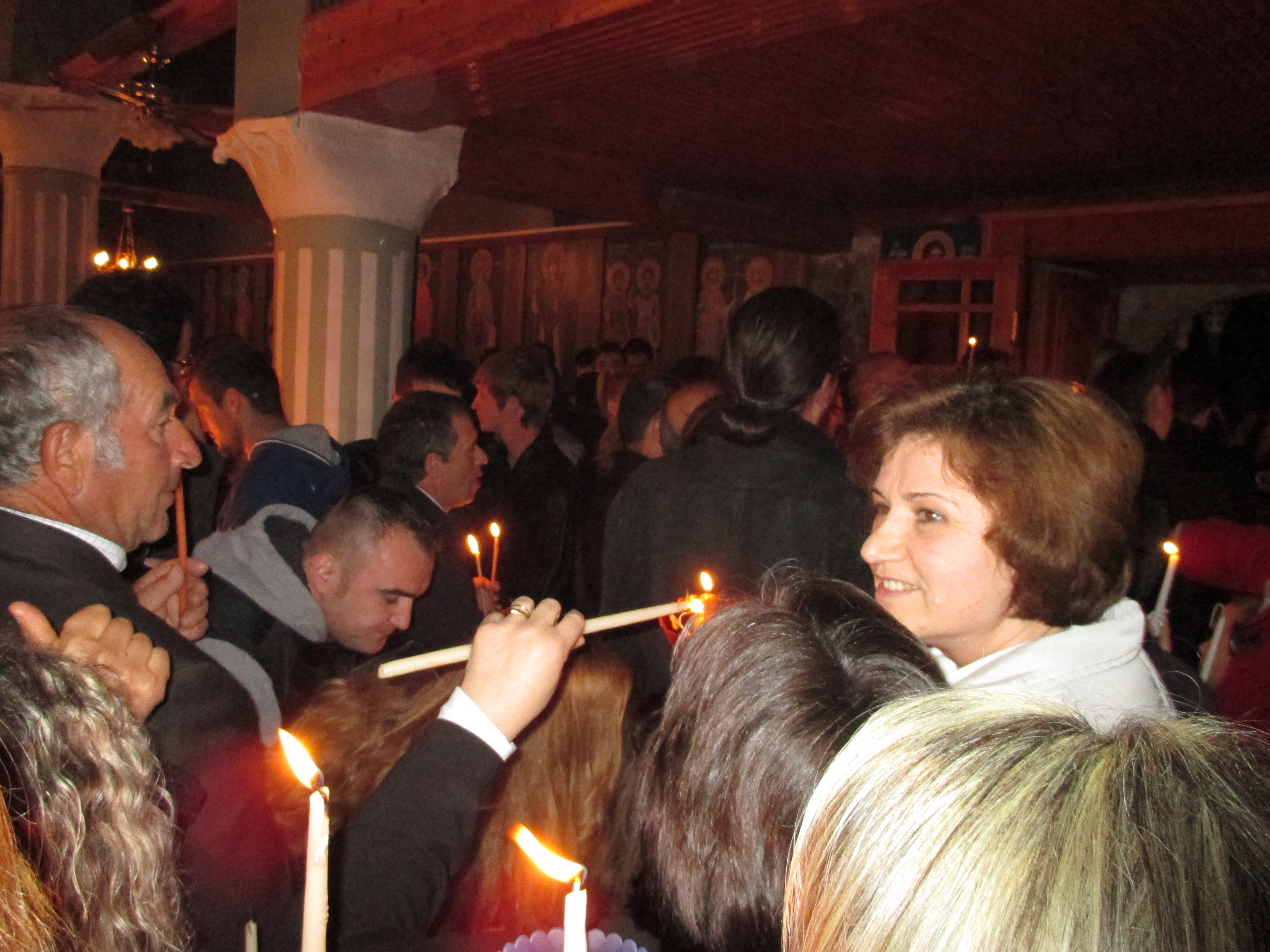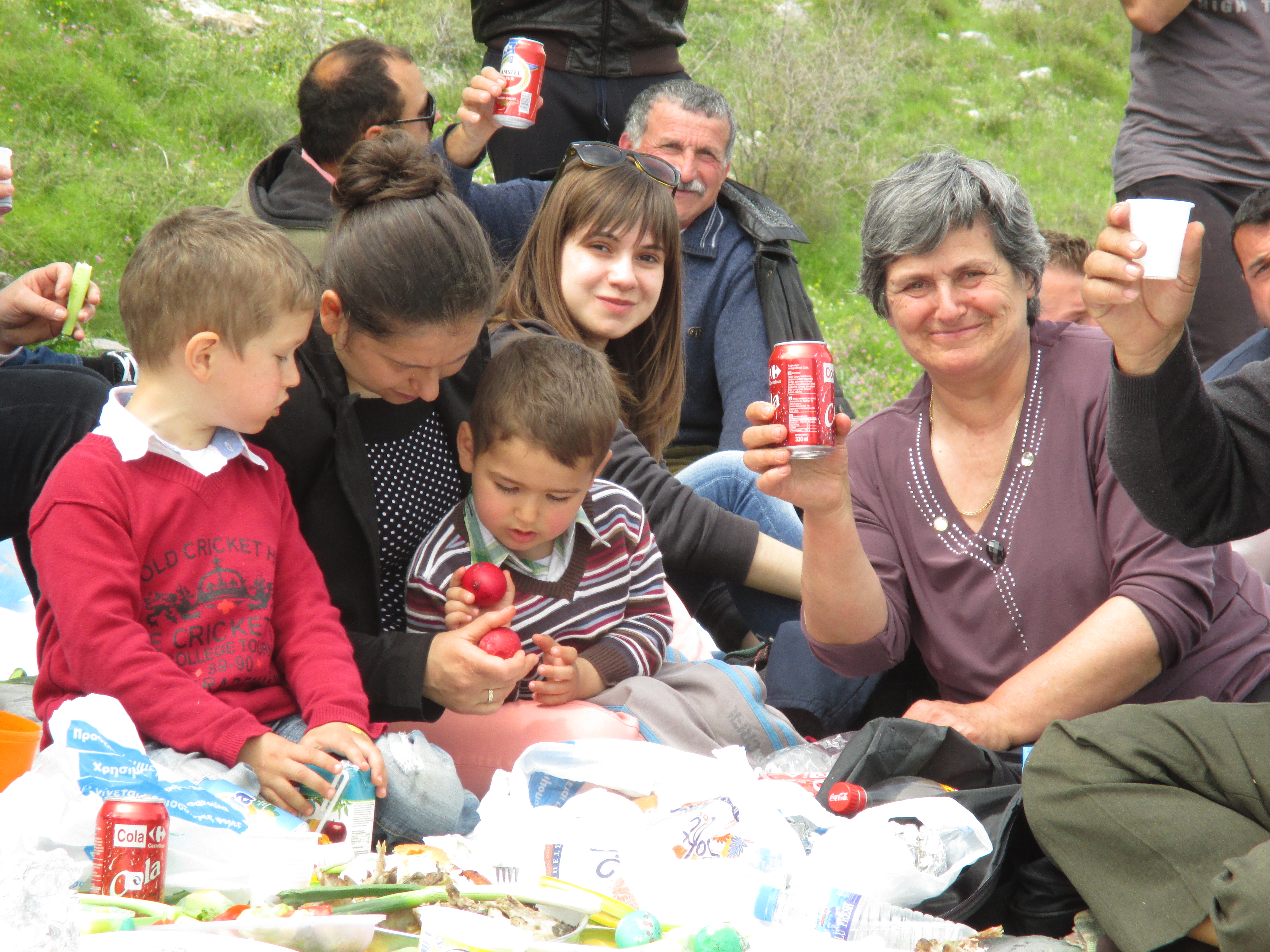 Vangeli is my second cousin Calliope’s eldest son. (See “Easter Eggs…“ because, believe me, you don’t want me to run through all the lineages each time and I can’t do it either.) When I first went to Derviçani in 1992, after Albania had safely opened up for good, Calliope was already living in Jiannena and we met there first, so we could get to know each other before going into Albania together. When we arrived in the village for the first time, hers was the face I was constantly looking for as a reference point among the throngs of relatives who were constantly surrounding me. It was her and my cousin Panto, Pantele, who is still my official bodyguard everywhere I go in the village, telling me who’s who since I can’t keep track, taking me everywhere I want to go, counting the tsipoura (raki) I have at every visit, so they don’t add up to too many in one afternoon, etc. His mother, my Kako Poly (Polyxene), is a saintly woman who made great sacrifices caring for my grandmother in her final years under conditions of great material deprivation for all. In video we have of my grandmother, taken by complete fluke by a cousin of my mother’s who went to Albania in 1988, a year before my grandmother died, as part of a Greek commercial exchange delegation — these groups were always taken to Derviçani as it was the showcase Greek minority village in communist times — my grandmother says: “Να, αυτή είναι η Πόλυ, μ’έχει επάνω της…“ — “Here, this is Poly, she (lit.) carries me.”