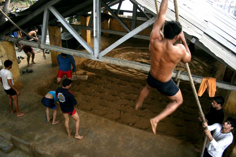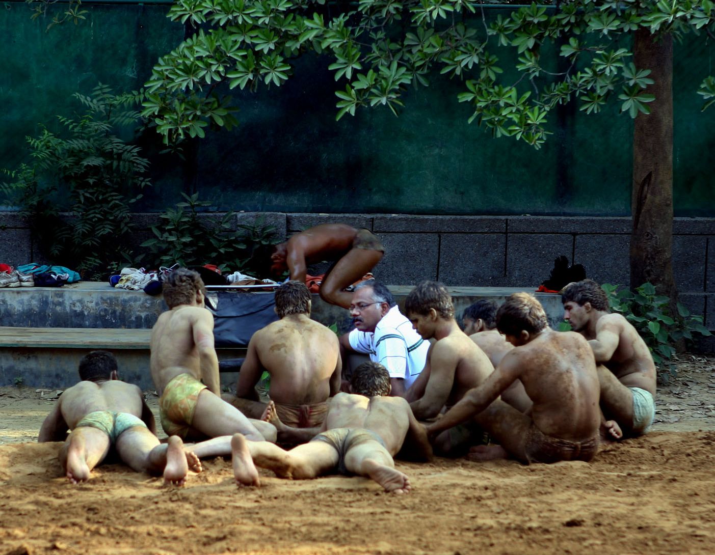 “At 5 in the morning when most of us are still curled up in bed, some young wrestlers begin a daily tradition. A tumbler full of warm milk and 30 almonds down they reach the practice ground and pay their respects to Lord Hanuman, the God of good health and courage. Then begins the strenuous training of theses wrestlers aka Pehlwans.
