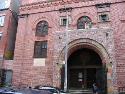 Unfortunately Oysher died young, at 51, and unfortunately the First Roumanian Shul (see below) was torn down or — like used to happen to “landmark” buildings in Greece — allowed to collapse in 2006.  It wasn’t any stunner of a building, but it was a historic center of Jewish New York and it had some of the best acoustics of any interior space in the city.  Its congregation was tiny at that point and only used the basement, even on Yom Kippur, but it could have easily been used as a concert hall or musical venue of sorts like so many houses of worship in the city whose demographic environment has changed.  In fact, it was in the process of being designated a landmark when, under shady New York real estate circumstances that may have involved the leaders of the congregation itself, city money for repairs was delayed for so long that the roof collapsed, the building was declared irreparable and the shul was demolished a few months later.