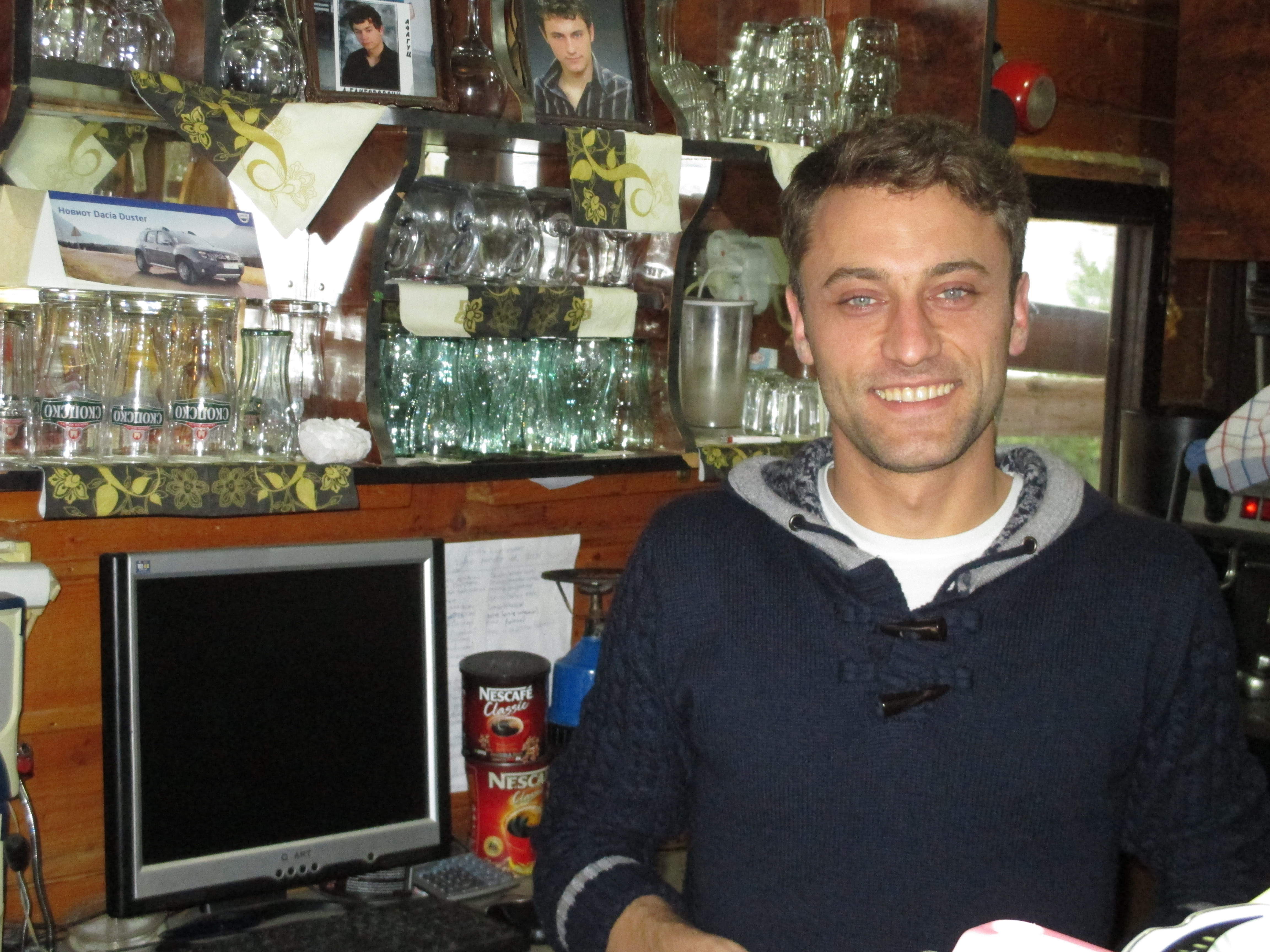 Back to Dimitri. Dimitri left his beautiful mountain village of Mavrovo in the Šar Mountains of Macedonia (shown below) to go work in Doha, malaka! In Qatar! (όνομα και πράμα)** Of course, he could only stand it for about a year, but made some money and came back to Mavrovo and opened a hotel and little bar-pastry-shop with his brother Darko, not in Mavrovo proper, but in Mavrovi Ani (The Hans of Mavrovo — from the Turkish-Persian for “inn”), because the mule caravans heading north into the plains of Tetovo and the rest of the Balkans used to meet here. Mavrovo — maybe it’s just my imagination or maybe tribal instinct — has the distinct feel of a front-line Christian village in a largely Muslim-Albanian area, like Derviçani, with Sveti Jovan, just up the road, watching its back. And from Mavrovo to Tetovo, unofficial capital of Macedonia’s some twenty-percent Albanian minority, all the crossbridges over the highway had “MAVROVO” graffitied on them. (I’ll get shit from the MESA Thought Police for writing stuff like this and probably even for dissing Qatar — though they’re allowed to — but, whatever, it comes with the territory. I’ll explain in another post.)